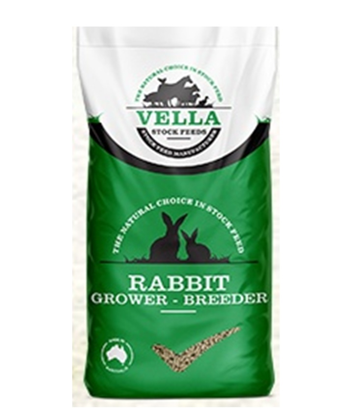 Vella Rabbit Grower/Breeder Pellets are a nutrient-rich complete feed formulated for young, growing rabbits and breeding stock. With balanced levels of protein, fibre, vitamins, and minerals, these pellets support rapid growth, healthy digestion, strong bones, and reproductive performance. Designed for both commercial breeders and hobby keepers, the pellets are highly palatable and easy to consume, ensuring rabbits receive consistent nutrition in every bite. They help maintain condition in breeding does and bucks while promoting healthy weight gain and development in growing rabbits. Clean, fresh, and carefully formulated by one of Australia’s trusted feed producers, Vella Rabbit Grower/Breeder Pellets provide everything your rabbits need for vitality, performance, and long-term wellbeing.